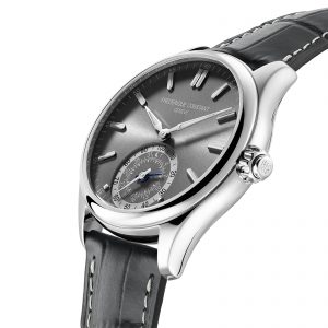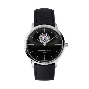 Clean lines, sobriety, with a profile of extreme finesse: the Slimline collection reveals the modernity of an extra-thin case with fluid lines of rare elegance. One of the slimmest models of Frederique Constant, the Slimline Heart Beat Automatic owes its absolute elegance to its pure lines and the quality of its design. Visibly masculine, this timepiece will look stylish on any man’s wrist. This watch is an eye-catching mix between classical aesthetics and innovation, especially as one catches a glimpse of the jeweled mechanism through the dial aperture at 12’ o’clock.